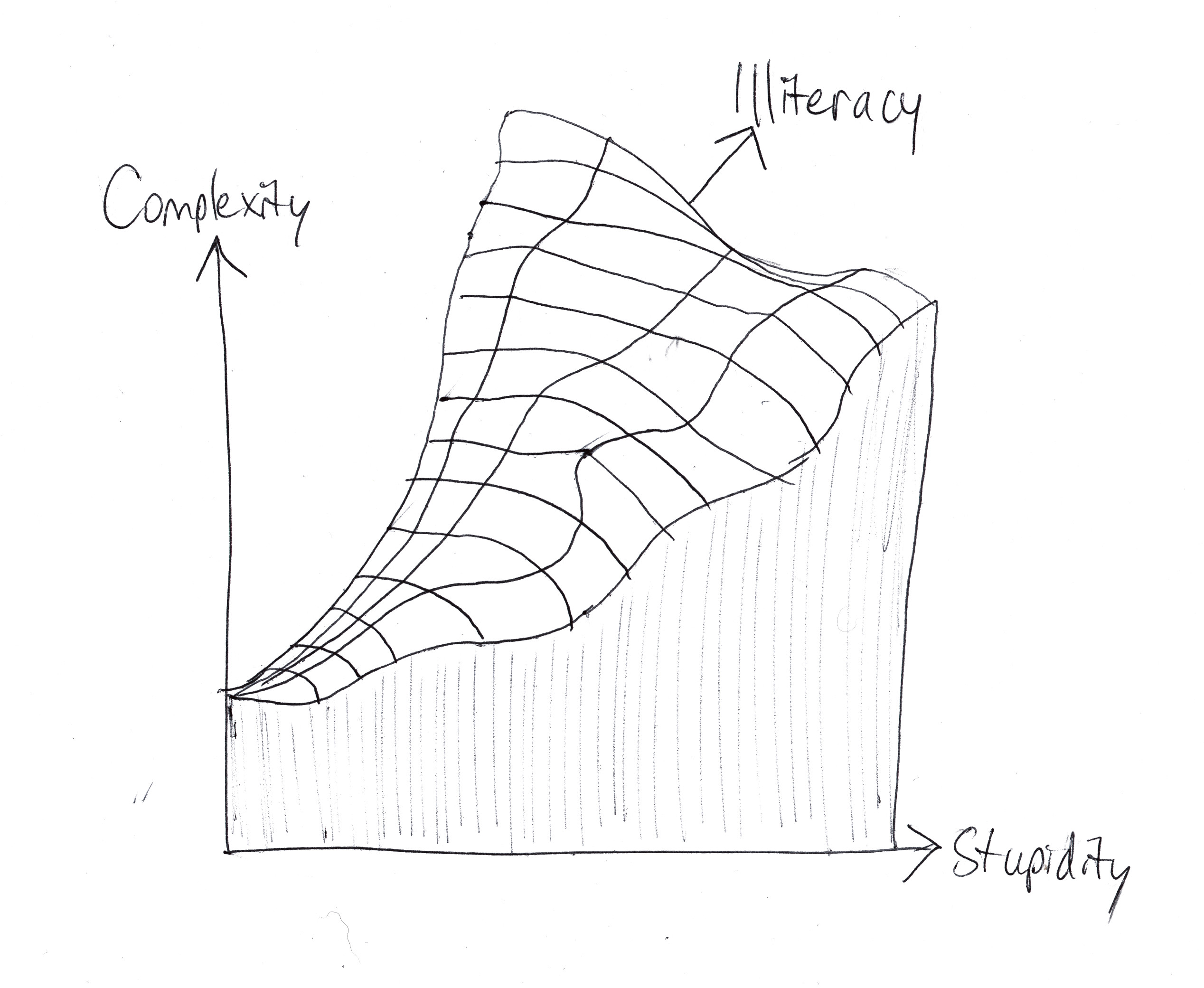 In a stunning revelation by Erogan Stink Software Lab this week, technologists showed that, contrary to longstanding theories, complexity does not induce glazed-over eyes and feelings of helplessness. Quite the contrary: stupidity and illiteracy lead straight to complexity.